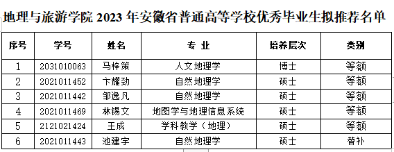 根据《关于做好2023年“安徽省普通高等学校优秀毕业生”评选工作通知》(研究生院〔2023〕5号)等文件精神和要求,学院在坚持公开、公正、公平原则的基础上,通过学生个人申请、学院评审委员会评审,现确定学院2023年安徽省普通高等学校优秀毕业生拟推荐名单。现公示如下: