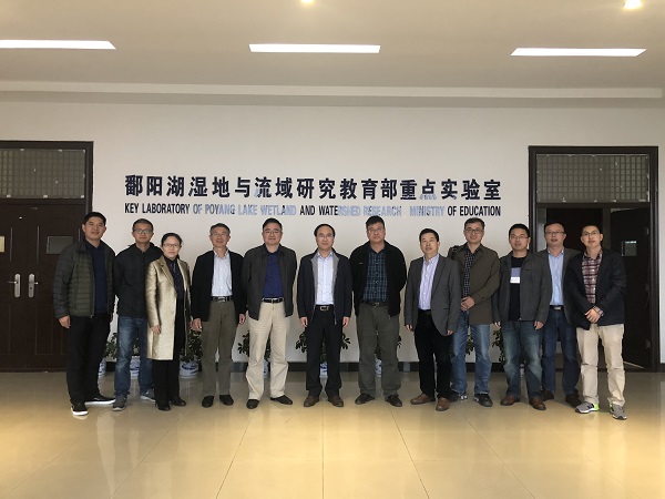 随后,苏勤、贾冠忠一行在舒晓波引领下参观了鄱阳湖湿地与流域研究教育部重点实验室,就实验室建设、管理和实验室科研平台的搭建等方面做了交流。