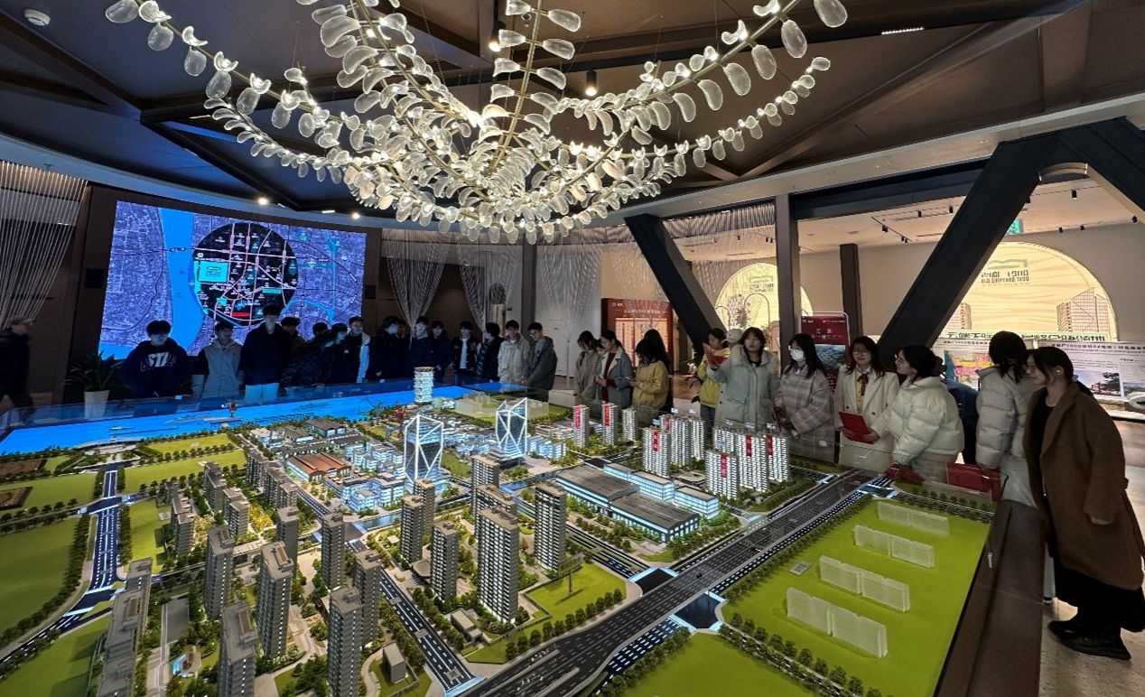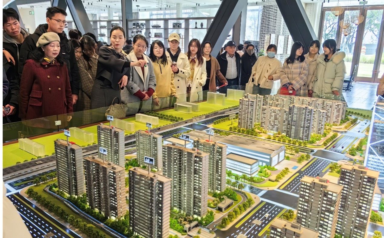 抵达目的地后,工作人员首先为同学们详细介绍了整片区域的规划设计理念。从整体布局到功能分区,从交通流线规划到公共空间打造,每一个细节都让同学们深刻感受到理论知识在实际项目中的具体应用。随后,工作人员对不同户型进行了讲解,包括空间布局、采光通风以及人性化设计等方面,让同学们对住宅设计有了更直观的认识。