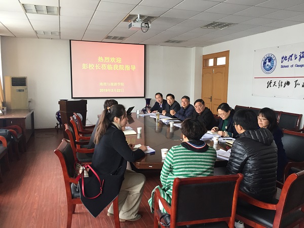 3月22日上午,副校长彭凤莲就地理学专业评估工作来beat365开展调研。院长苏勤、书记贾冠忠及全体领导班子和部分教师代表参加调研会,会议由苏勤主持。