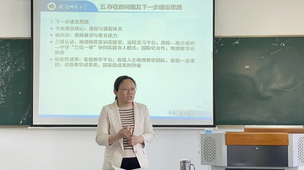 会上,陆林副校长和杨钊主任分别汇报了国家级一流本科专业建设点地理科学专业、旅游管理专业中期建设情况,从专业基本情况、建设总体目标及进展情况、经费使用情况、标志性成果完成情况、存在的问题及下一步建设思路等多方面进行全面汇报。充分展示了2个专业建设取得的标志性成果和亮点,又总结了专业中期建设经验和存在的困难,为进一步强化专业内涵建设、提升一流本科专业建设水平具有重要的促进作用。
