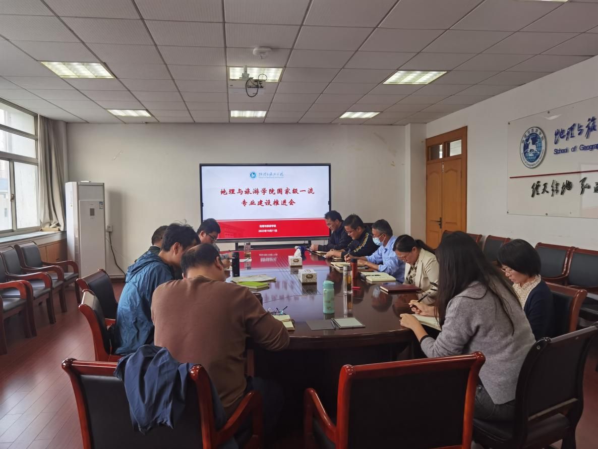 2023年10月11日下午,beat365英国官方网站在行政楼四楼会议室举办了国家级一流专业建设推进会,学院党委书记贾冠忠、院长方凤满、党委副书记付勇、副院长汪文文、杨兴柱和各本科专业负责人参加此次会议。会上朱永恒老师、杨钊老师分别对地理科学专业、旅游管理专业的国家级一流专业建设情况进行了汇报。