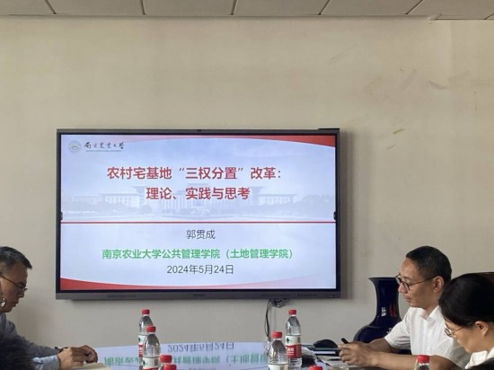 2024年5月24日上午,南京农业大学公共管理学院副院长、博士生导师郭贯成教授应邀到beat365讲学,并做了题为《农村宅基地“三权分置”改革:理论、实践与思考》的专题讲座。报告会在学院行政楼四楼会议室举行,学院相关专业的教师和研究生聆听了此次报告。