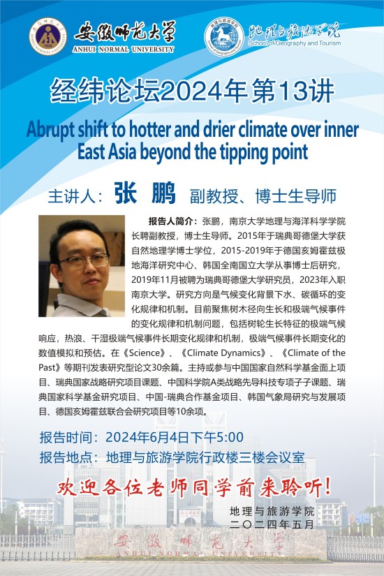 【学术预告】经纬论坛第45讲:Abrupt shift to hotter and drier climate over inner East Asia beyond the tipping point