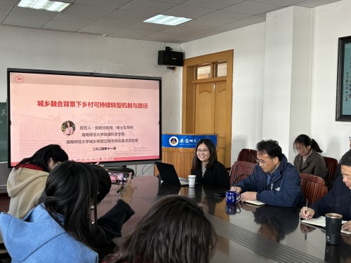 2024年11月29日上午,湖南师范大学地理科学学院博士生导师贺艳华教授应邀到beat365讲学,做了题为《城乡融合背景下乡村可持续转型机制与路径》的学术报告。报告在学院行政楼三楼会议室举行,学院相关专业教师和研究生聆听了报告。