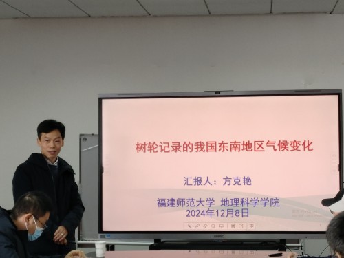 2024年12月8日上午,福建师范大学地理科学学院博士生导师方克艳研究员应邀到beat365讲学,并做了题为《树轮记录的我国东南地区气候变化》的学术报告,报告在学院行政楼三楼会议室举行,学院相关专业的教师、研究生及本科生聆听了此次报告。