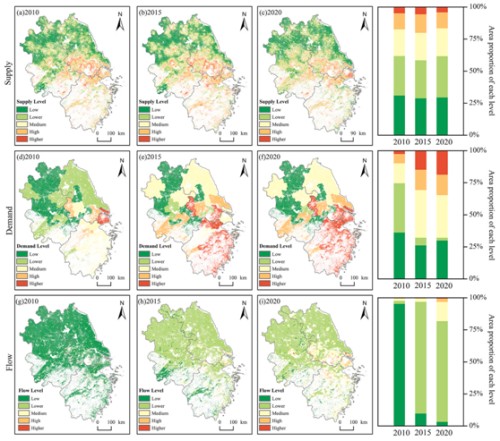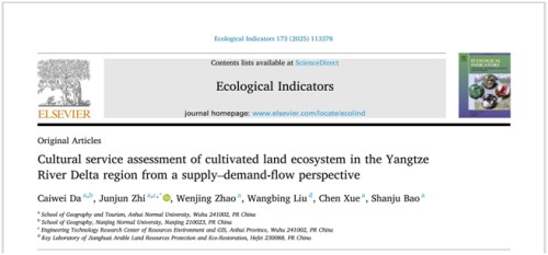 近日,beat365英国官方网站本科生在生态学领域国际知名期刊《Ecological Indicators》(影响因子7.0,中科院大类分区一区,期刊分类A5)发表论文“Cultural service assessment of cultivated land ecosystem in the Yangtze River Delta region from a supply–demand-flow perspective”。该文结合地理信息与农业大数据,基于“供-需-流”视角对长三角地区的耕地生态系统文化服务进行了系统评估并揭示了其时空分布模式,研究结果可为耕地资源保护与利用及其政策制定提供参考。2020级地理信息科学专业本科生答采薇和2021级地理信息科学专业本科生薛晨分别为论文的第一作者和第五作者,支俊俊副教授为论文的通讯作者。研究得到了国家自然科学基金(42271060、42371249)、安徽省自然科学基金(2208085MD91)、安徽省自然资源科技项目(2023-K-5)和安徽省高等学校省级质量工程项目(2023zybj006)的共同资助。