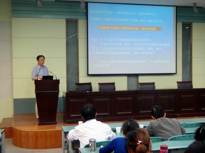 针对近年来国内外自然灾害频繁发生,黄崇明教授从风险无处不在、什么是风险、自然灾害风险分析、自然灾害风险管理、值得关注的几个研究方向、主要结论等六个方面向与会师生介绍了有关风险及自然风险的知识。在介绍的过程中,黄教授运用了大量的动漫演示动画及图表,生动形象,深入浅出。黄教授渊博的知识、透彻的分析、风趣的谈吐、独到的见解使在座师生拓宽了眼界,受益匪浅,受到与会师生热烈的欢迎。