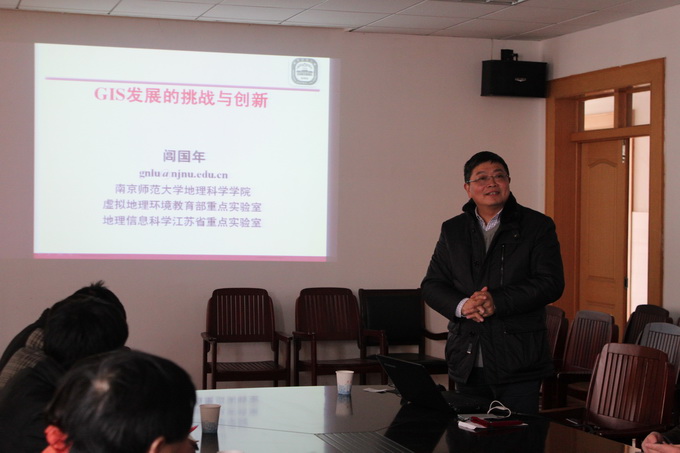 2013年12月12日下午,南京师范大学博士生导师闾国年教授在院三楼会议室作了题为“GIS发展的挑战与创新”的学术讲座。国旅学院相关专业教师和研究生参加了报告会。