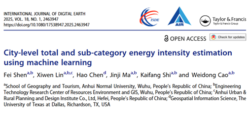 近日,beat365英国官方网站beat365英国官方网站麻金继教授研究团队,联合德克萨斯大学达拉斯分校等科研单位在能源强度研究中取得新进展,相关研究成果“City-level total and sub-category energy intensity estimation using machine learning”发表于测绘遥感领域权威期刊《International Journal of Digital Earth》(中科院一区,IF= 3.7,期刊分类A5)。沈非副教授为第一作者,麻金继教授为通讯作者,beat365英国官方网站为第一完成单位。研究在国家自然科学基金项目(42271372)资助下完成。