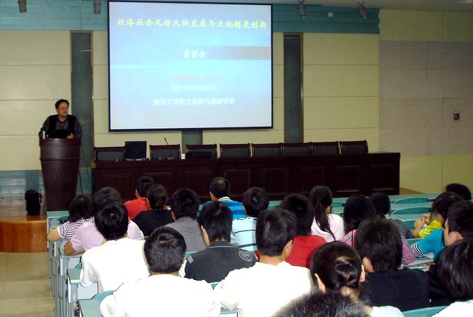 5月29日,学院实验楼101学术报告厅,南京大学地球科学与海洋学院博士生导师黄贤金教授作了题为“经济社会又好又快发展与土地制度创新”的专题学术报告,土地资源管理专业全体在校教师、相关专业研究生及本科生参加了报告会。
