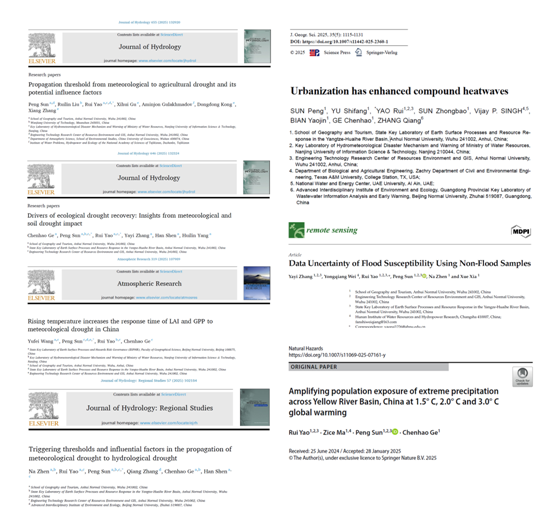 beat365英国官方网站beat365英国官方网站孙鹏教授团队联合得克萨斯农工大学、北京师范大学、中国地质大学等国内外知名高校,在气候变化生态效应与极端气候事件成因研究领域取得进展。2025年以来团队累计发表高水平学术论文8篇,其中5篇发表于安师大A5类核心期刊,2篇成果发表于水文学领域国际著名期刊《Journal of Hydrology》(中科院一区Top,IF:6.4)。研究系统量化中国不同下垫面类型区气象-农业干旱的传播阈值,精准解析生态干旱恢复动态的主导机制,确定LAI、GPP植被指标对干旱的响应时间;揭示长三角城市群城市化对昼夜差异化热浪的强化规律并预估了不同温升情景下的人口暴露度影响,为应对气候变化提供了重要科学依据。