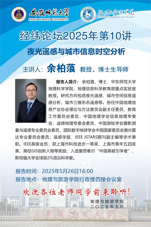 【学术预告】经纬论坛第76讲:夜光遥感与城市信息时空分析