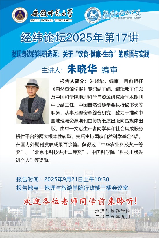 【学术预告】经纬论坛第83讲: 发现身边的科研选题:关于“饮食-健康-生命”的感悟与实践