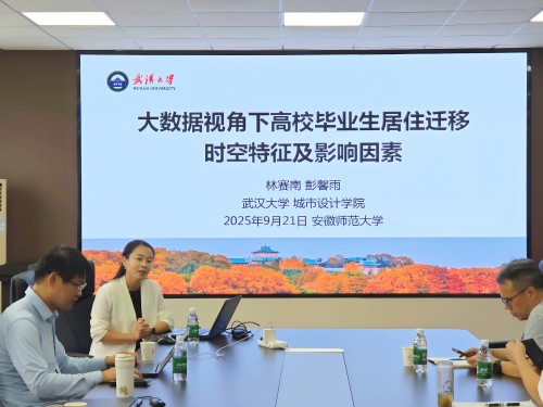 2025年9月21日下午,武汉大学城市设计学院博士生导师林赛南教授应邀到beat365讲学,并做了题为“大数据视角下高校毕业生居住迁移的时空特征及影响因素”的学术讲座。报告在学院行政楼三楼会议室举行,学院相关专业的教师和研究生聆听了讲座。