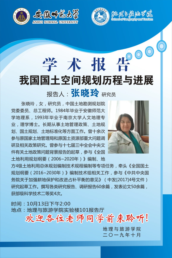中国土地勘测规划院张晓玲研究员应邀到地旅学院讲学