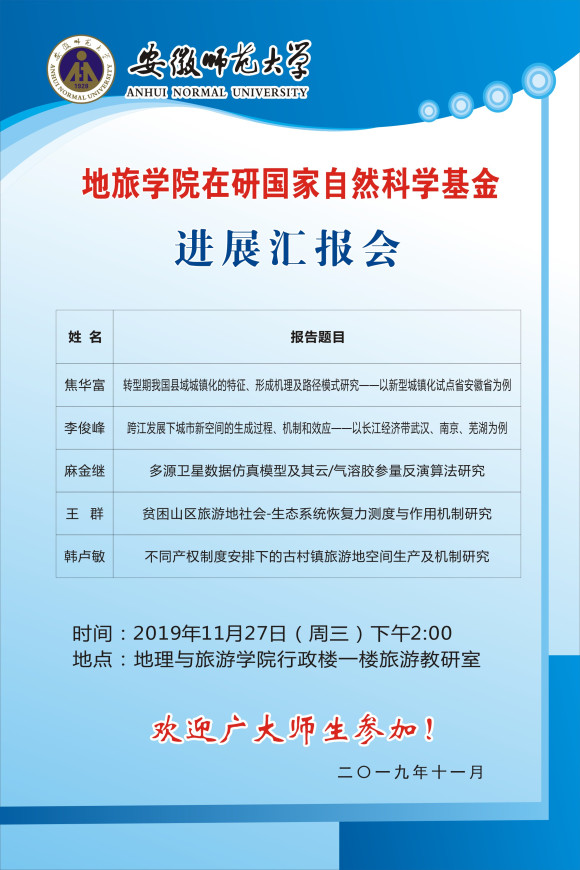【学术预告】地旅学院在研国家自然科学基金项目进展汇报会