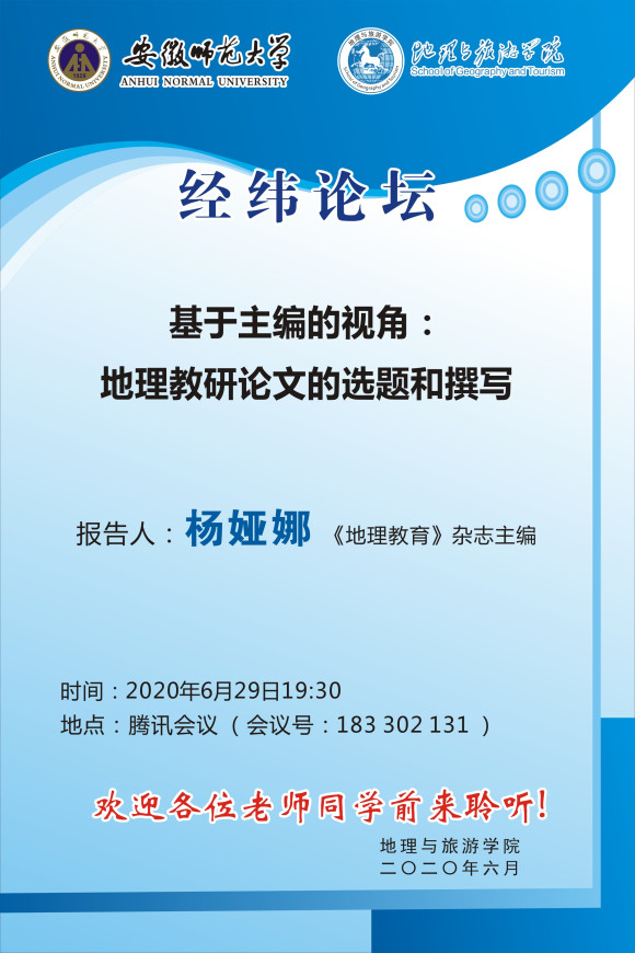 【学术预告】杨娅娜:地理教研论文的选题和撰写
