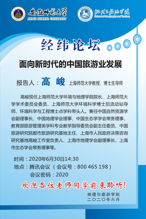 【学术预告】高峻:面向新时代的中国旅游业发展