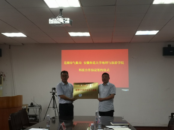 首先,苏勤院长就学院的发展历史,当前的专业设置、师资队伍、人才培养、科学研究、社会服务等方面进行了介绍,提出未来与气象局的合作展望。孙大兵局长就芜湖市气象局人员配备现状、气象服务、气象科技创新等做了扼要分析。随后,双方签订了科技合作协议,并进行了地理科学专业实习基地授牌仪式。孙大兵局长一行还参观了我校博物馆。