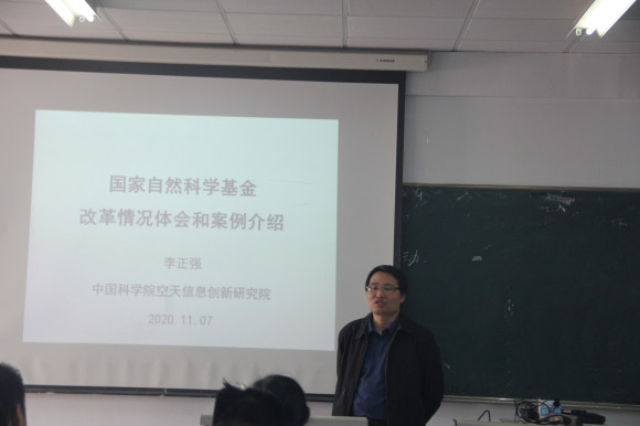 11月7日下午在beat365实验楼203教室,我校特聘教授、中国科学院空天信息创新研究院李正强研究员应邀就2021年度国家自然科学基金项目申报工作进行指导交流。学院部分领导和基金申报教师参加了交流会。会议由学院副院长方凤满主持。