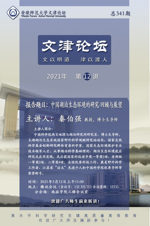 【学术预告】秦伯强:中国湖泊生态环境的研究-回顾与展望