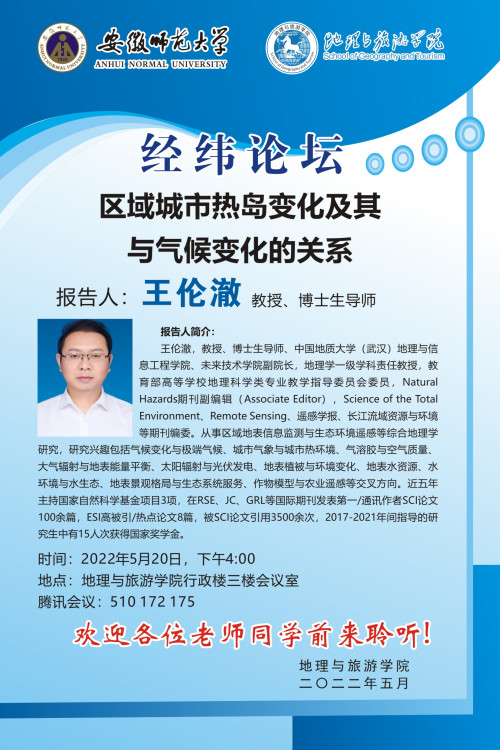 【学术预告】王伦澈: 区域城市热岛变化及其与气候变化的关系