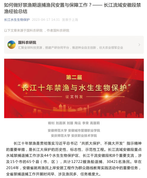 下一步,杨钊教授团队将进一步响应国家长江十年禁渔战略部署,继续围绕退捕渔民群体,深化退捕渔民可持续生计研究,为长江十年禁渔与退捕渔民就业转产贡献智慧。