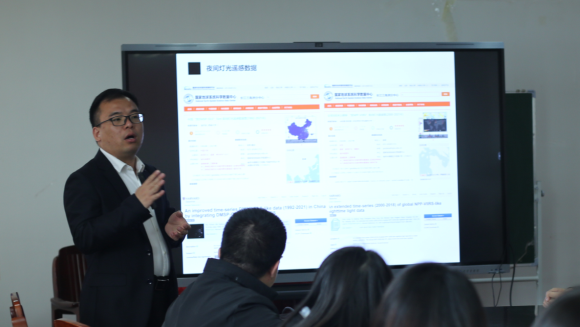 讲座中,施开放首先以个人科研成长经历为切入点,分享了他在夜间灯光遥感领域的研究工作。然后,他结合自身的研究经验,说明了文献检索、数据获取与数据分析的重要性。向师生们介绍了地理学国外核心期刊数据库、获取数据的网站及数据处理工具,同时指出大家要对论文文献信息保持实时关注。最后,他阐述了在论文写作中要学会使用出图工具和进行文献管理,对论文写作的基本思路、框架以及写作中需要注意的事项做了详细说明。