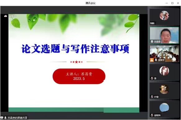 5月31日晚,湖南财政经济学院经济地理所副所长苏昌贵研究员应邀作了题为《论文选题与写作注意事项》的线上讲座,beat365相关专业的教师和研究生在学院行政楼四楼会议室通过视频连线的方式聆听了讲座。