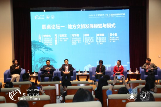 主题报告结束后,平行论坛会议相继开始。本届年会共设18个平行论坛,31个分会场,包括中国式现代化与文旅高质量发展、旅游学科自主知识构建、数字文旅创新、旅游发展与生态文明建设、旅游发展与乡村振兴、共同富裕、旅游发展与新型城镇化、区域协调发展、文旅资源开发与目的地建设、文旅消费与业态创新、文化赋能与遗产保护、休闲游憩与公共服务、Critical tourism reflections: Practice and theory、旅游大数据应用与创新、会展转型创新与美好生活、韧性、创新与升级:再出发的旅游企业、餐饮可持续发展、线性资源的文化旅游利用与创新研究、旅游市场高质量发展与公共治理效能提升、新形势下中国酒店业变革与管理创新研究。 同时,本届年会为了深化与业界的沟通交流,加强对旅游教育和学科发展的支持,特设了“地方文旅发展经验与模式”以及“旅游教育与学科未来”两个圆桌论坛,邀请业界精英与专家学者展开对话。年会继续开设“旅游研究前沿先锋论坛”,邀请科研一线的中青年学者带来各自研究领域关注的热点和前沿话题探讨。