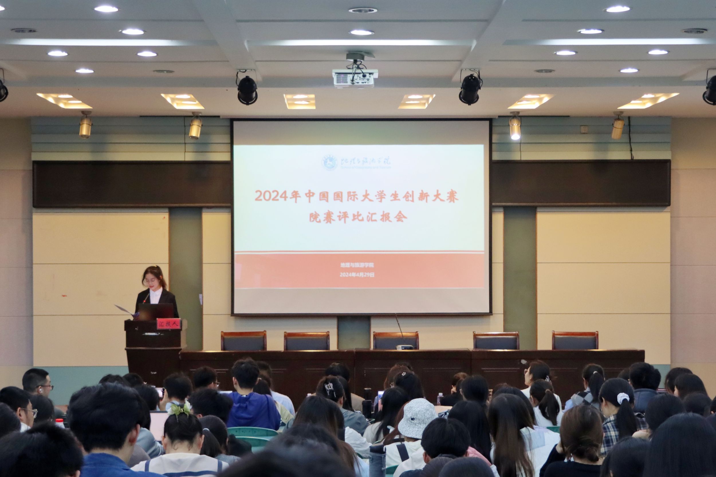 地旅学子探智慧之源,创新思潮涌未来之泉。为全面贯彻落实党的二十大精神,加快培养创新创业人才,建立大学生创新大赛长效机制,4月29日晚七点,beat365英国官方网站在学院实验楼101报告厅举行了2024年中国国际大学生创新大赛院级评选报告会。创新创业教育学院教师甘伟、旅游管理专业教师杨效忠、地理科学专业教师孙鹏、地理信息科学专业教师徐培培、城乡规划专业教师姚景艳、土地资源管理专业教师程超、院团委书记韦银艳、参赛团队队员及各班级学生代表参与此次活动。