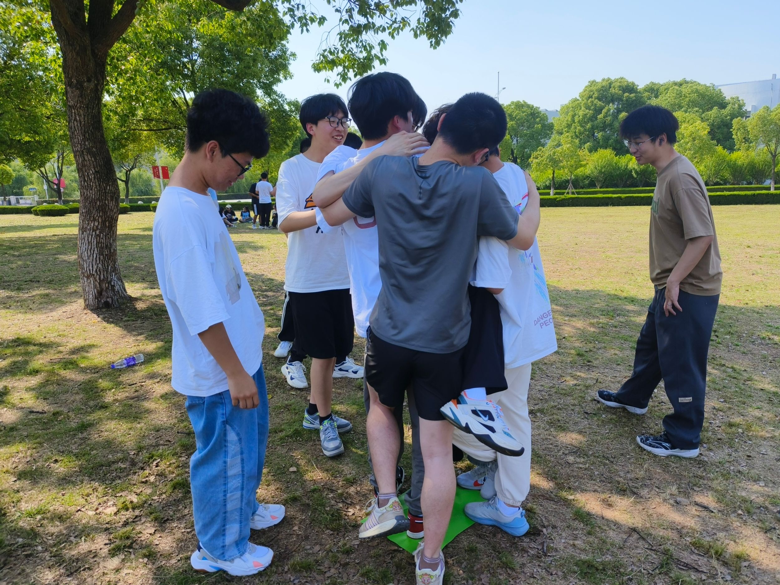 524日,经历了期末体育考试之后,215寝室在南体旁边的草坪上组织了主题为“多做运动,强健体魄”的团建活动,吸引了许多身体素质欠佳,平时不爱运动的同学。