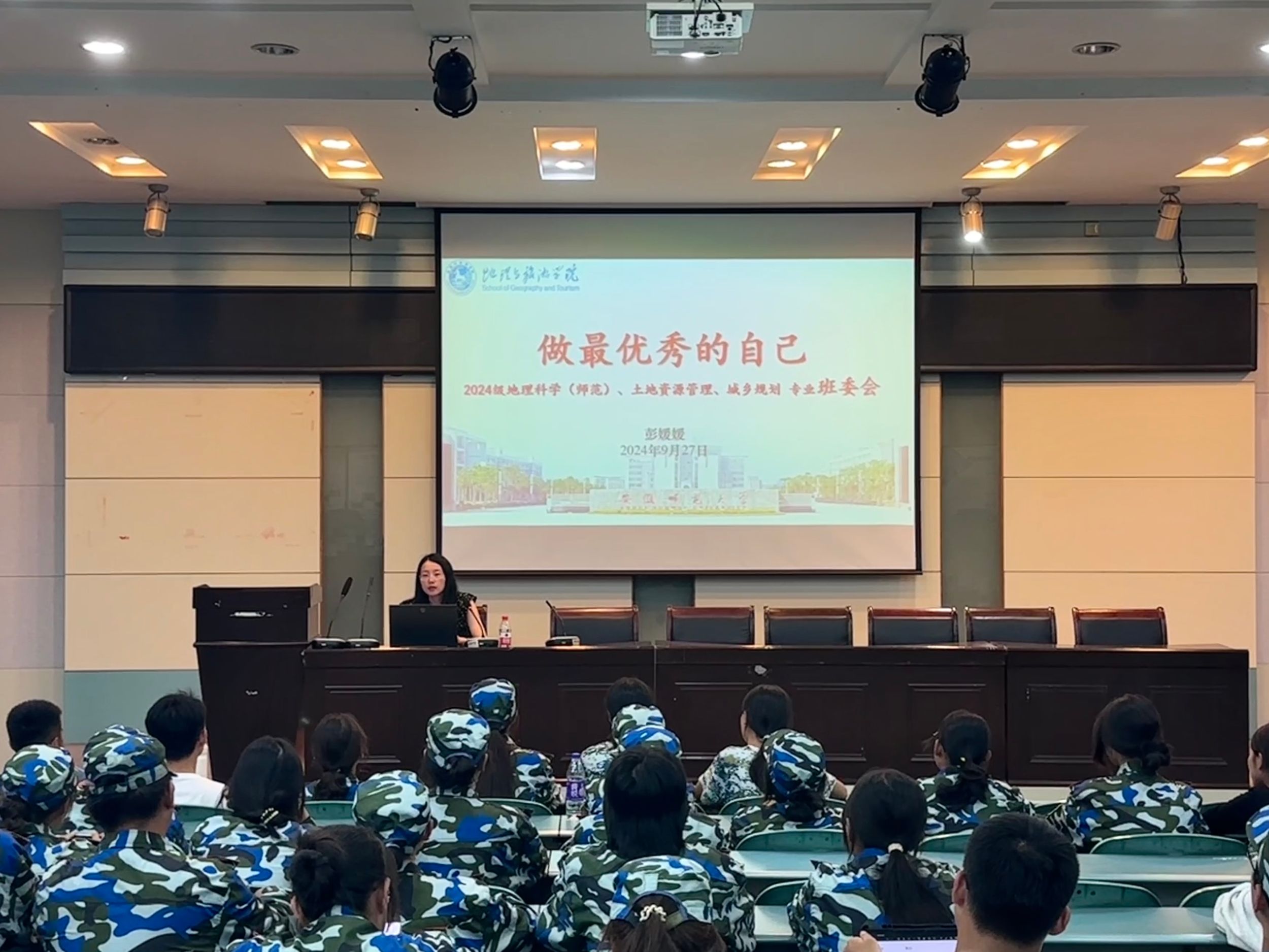 2024年9月27日下午,彭媛媛组织24级地理科学(师范)、土地资源管理、城乡规划专业各班级班委于在地旅学院实验楼101教室,举办主题为“做最优秀自己”班委会。会议明确了班委在班级中的多重角色、相关责任以及具体的工作要求,为班级的良好发展奠定了坚实的基础。