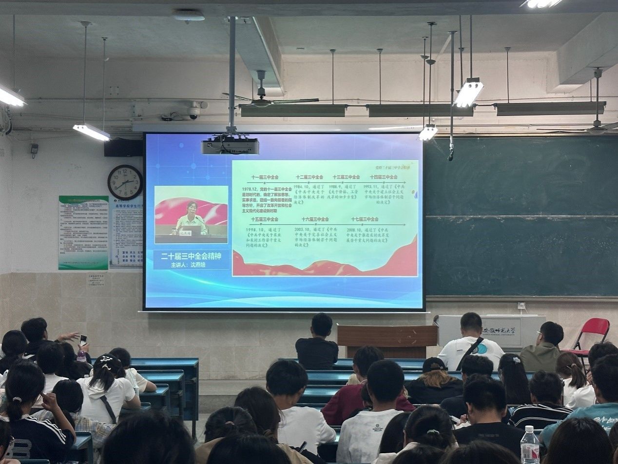 会议开始,沈燕培首先带领同学们初步了解三中全会,通过对历届三中全会的介绍,认识到三中全会在中国改革开放进程中的重要历史意义,进而强调二十届三中全会的重要性。沈燕培鼓励同学们积极了解二十届三中全会,阅读会议原文件,切身体会全会精神。