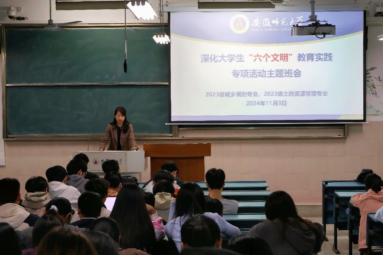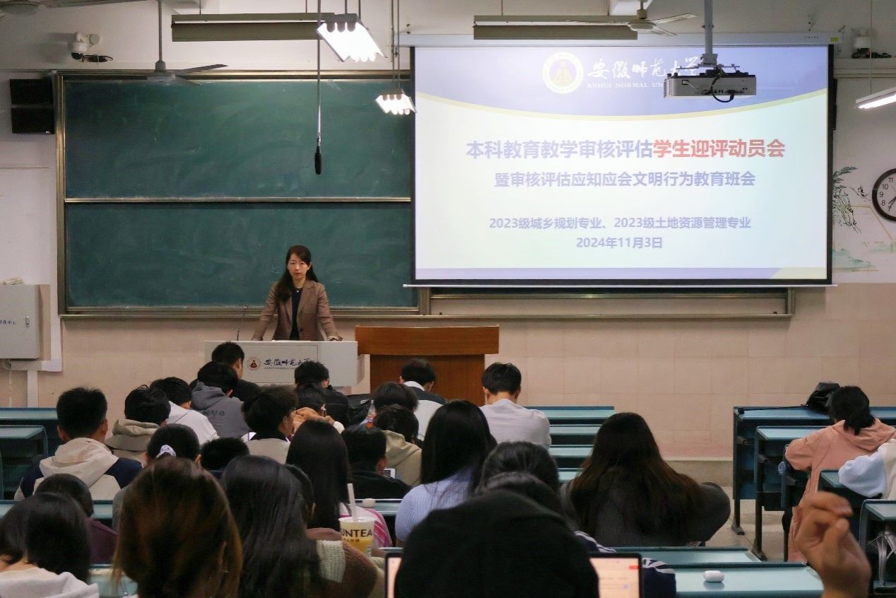 本网讯(地旅学院 殷齐悦)为全力推动大学生护航行动计划的深入实施,促使学生培育优良文明习惯,打造安全、有序且文明卫生的校园育人氛围,与此同时,也为本科教育教学评估精心做好全方位准备。11月3日晚上七点,beat365英国官方网站2023级城乡规划和2023级土地资源管理专业在2050303教室召开了深化大学生“六个文明”教育实践专项活动主题班会及本科生教育教学评估学生迎评动员大会。本次会议由辅导员李婷君主持,2023级城乡规划和2023级土地资源管理全体同学参加。