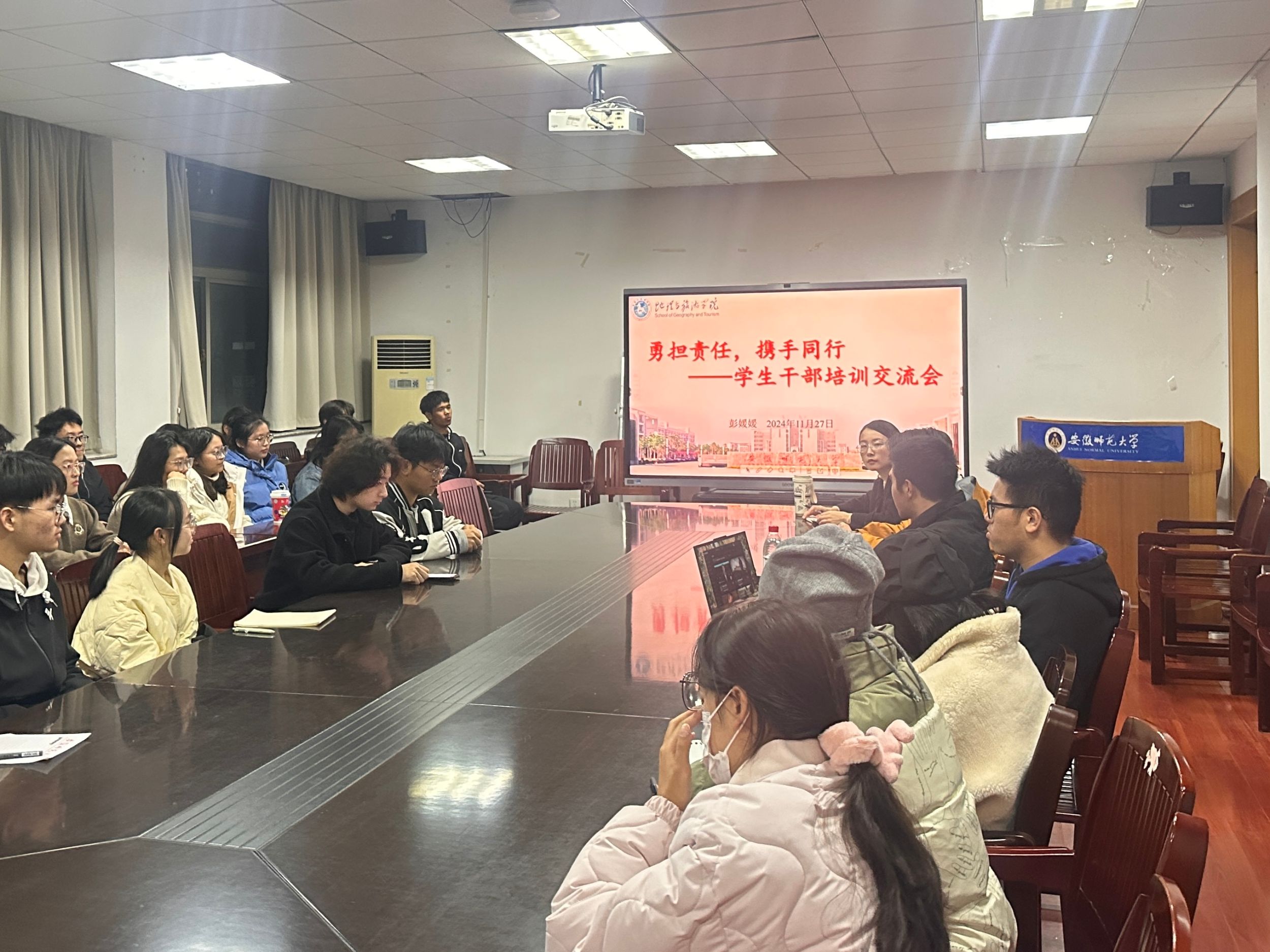 本网讯(地旅学院 万思琪、田柏闻)11月27日晚,为帮助学生干部明确职责,提升自我,增强学生组织的凝聚力和工作效率,beat365英国官方网站在行政楼三楼会议室组织召开学生干部交流培训会,本次会议由辅导员彭媛媛主持,2024级地理科学(师范)、城乡规划、土地资源管理专业各班班委参加。