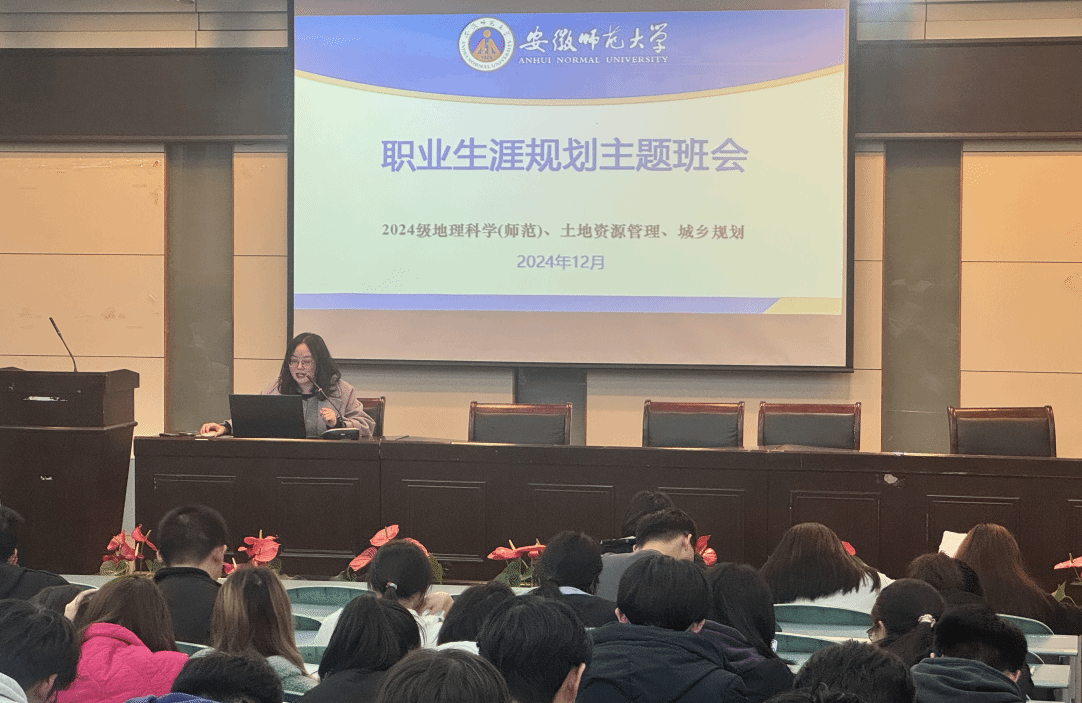 (本网讯 地旅学院曹文瑾、田柏闻)为帮助学生树立正确的职业规划意识,明确发展目标,2024级地理科学(师范)、城乡规划、土地资源管理专业于12月12日在beat365英国官方网站实验楼101报告厅召开职业生涯规划教育主题班会,会议由班助章怡晨主持,各专业全体学生参加。