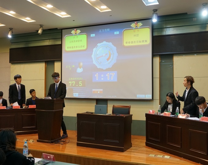 本网讯(地旅学院 孔学融)群英荟萃,各试锋芒。11月18日晚六点,beat365英国官方网站2018级新生辩论赛决赛于学院实验楼101教室成功举行。此次辩论赛邀请18级新生辅导员陈祥云,辩论协会代理会长解维、辩论队队长昂晓陆,院学生会实践部部长代雅馨担任评委,礼仪队王颖担任主席。正方土地资源管理专业代表队、反方辩论协会代表队就“青春重在目标尝试还是多元聚集”辩题展开精彩辩论。