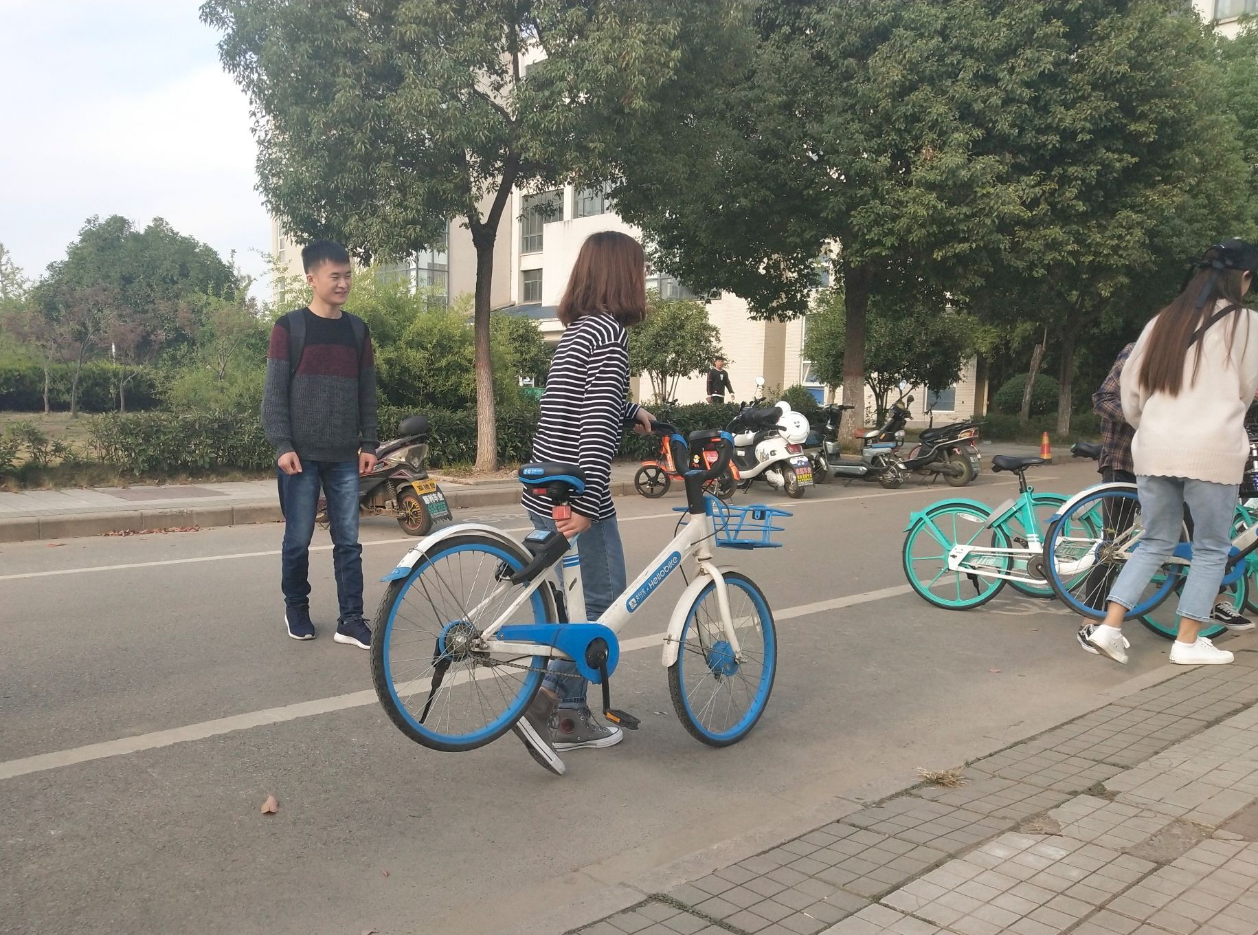 大家在整理车辆过程中还发现,有的单车上被贴上了“牛皮癣”,有的单车篮里堆放着塑料瓶,还有的单车的链条或是座椅都已损坏,看起来十分不美观,而且还影响同学们的正常租用和安全出行。大家纷纷动手清理这些垃圾来,不一会,单车里的垃圾就被清理的干干净净,对于那些受到破坏的车辆,大家也及时拿出手机报修。经过班级同学的共同努力,校园里的共享单车变得整整齐齐,焕然一新起来。