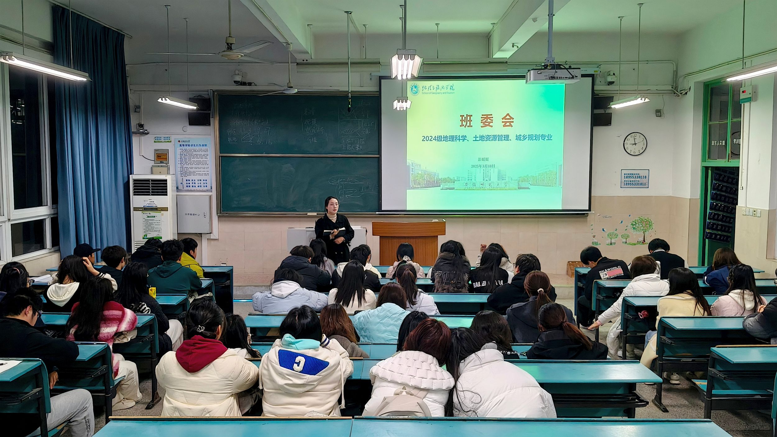 (地旅学院 万思琪、曹文瑾、何诗雨)3月18日,为进一步加强班级管理,营造积极向上的班级氛围,2024级地理科学(师范)、土地资源管理和城乡规划专业在行知楼204104教室召开班委会。会议由辅导员彭媛媛主持,各班班委参加。