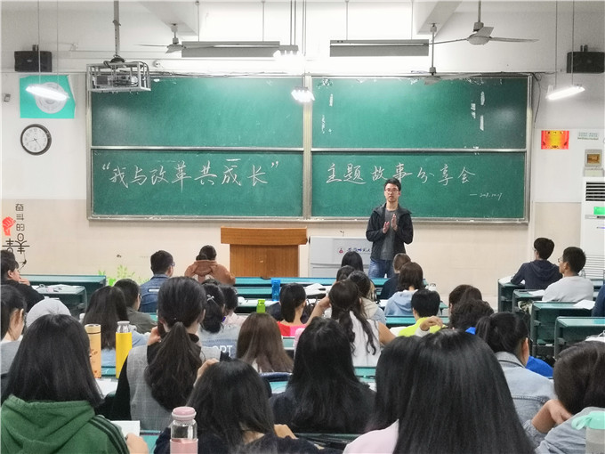 本网讯(地旅学院 李蕊、孙夏路遥)改革开放四十载,故事今谈春风来。10月17日晚,2017级地理科学团支部在行知楼2040103教室举办了“我与改革共成长”主题团日暨故事分享会活动。9位同学依次上台分享改革故事,辅导员吴辉与支部全体团员青年参与了此次活动,活动由团支部书记杨玲主持。