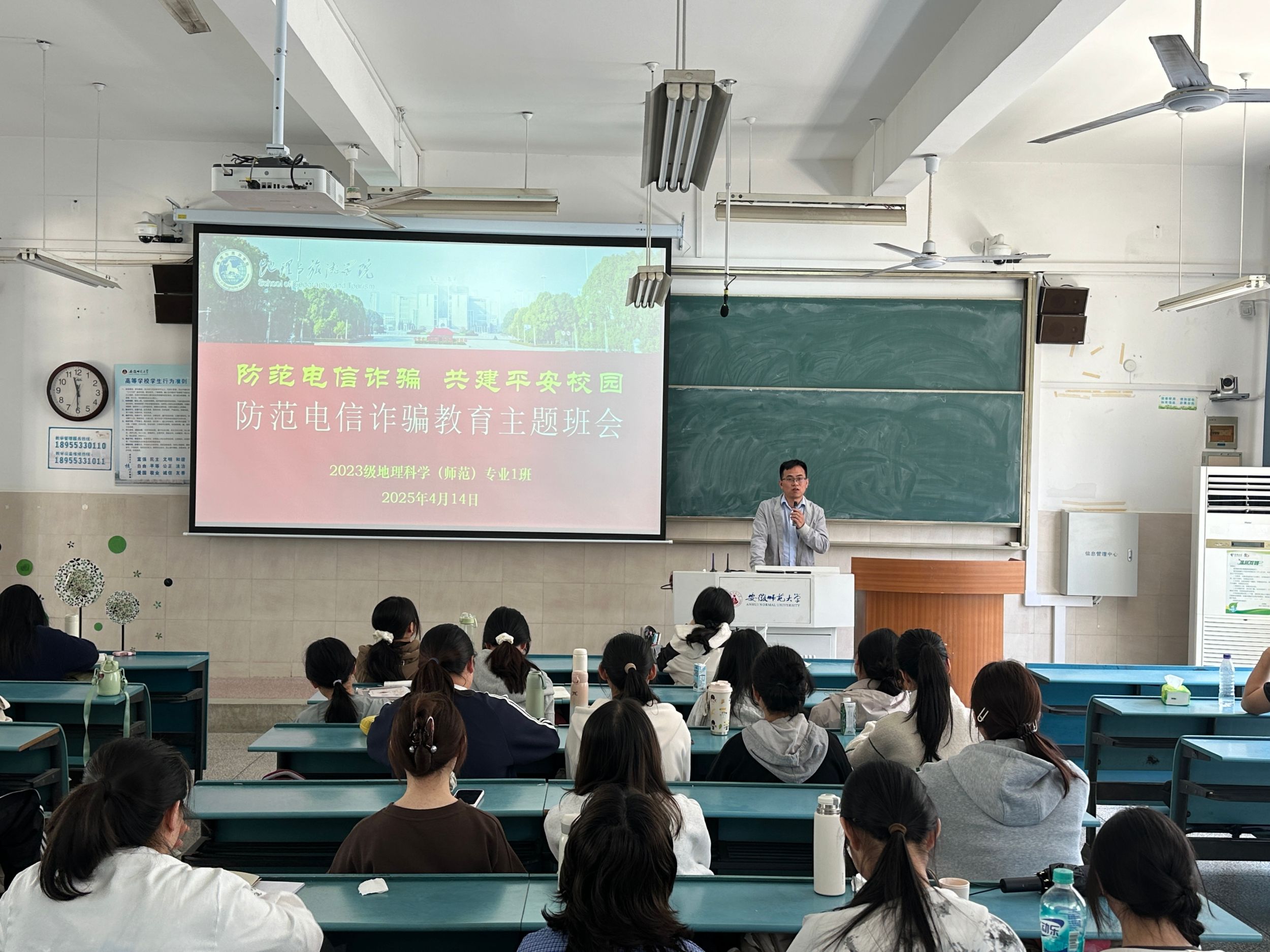 4月14日上午,2023级地理科学(师范)专业1班在行政楼2040303教室召开“防范电信诈骗 共建平安校园”防范电信诈骗教育主题班会,2023级地理科学(师范)专业1班全体同学参加会议。会议由辅导员齐小学主持。