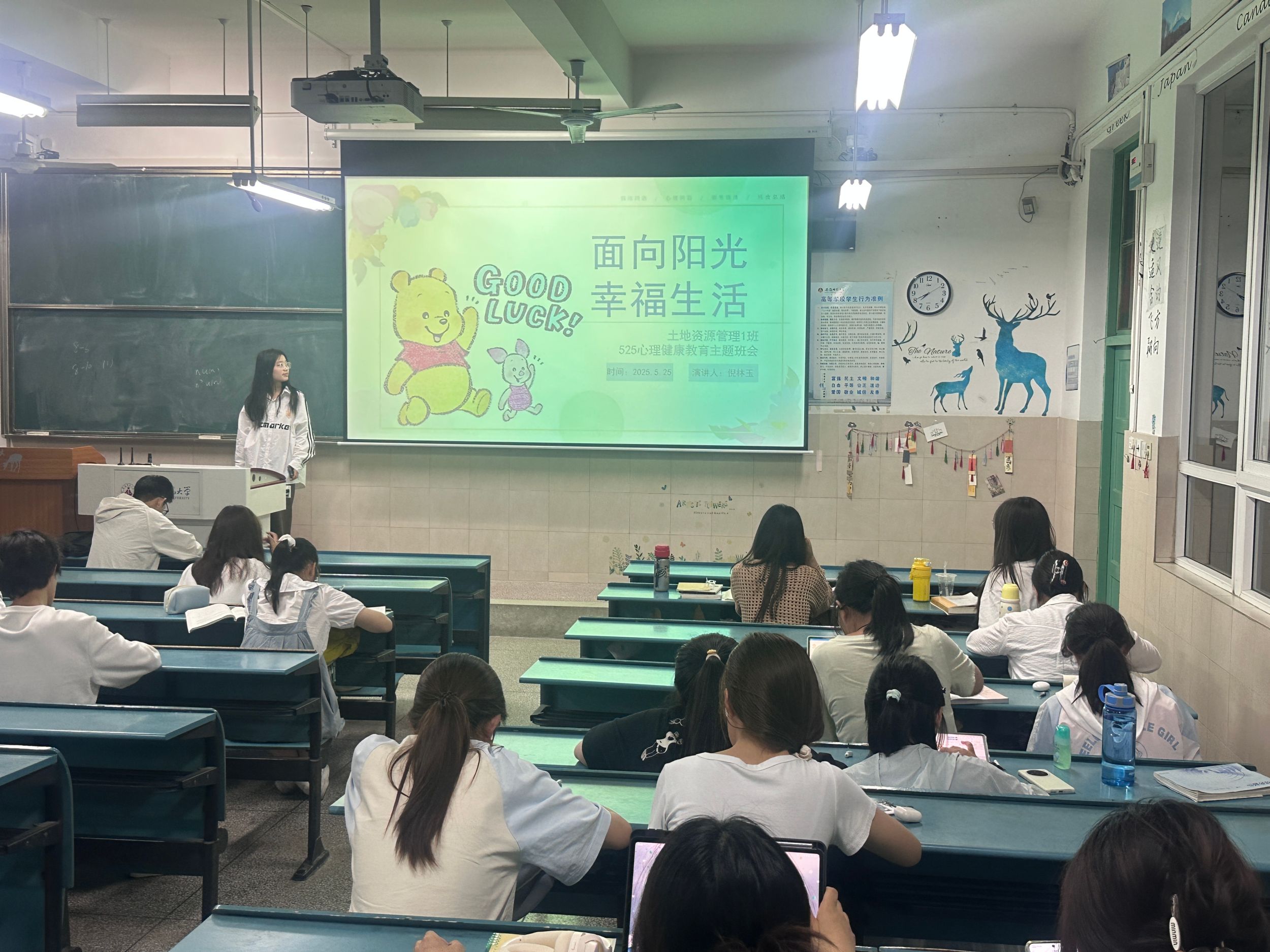 (地旅学院 刘紫凤、何诗雨、曹文瑾、万思琪)5月25日,为了普及心理健康知识,增强学生的心理调适能力,2024级地理科学(师范)、土地资源管理和城乡规划专业分别在各自教室成功举办了以“相约525 践行我爱我”、“面向阳光 幸福生活”、“每一个当下的你,都是最好的你”和“悦纳自我 关爱心灵”为主题的系列心理健康主题班会。