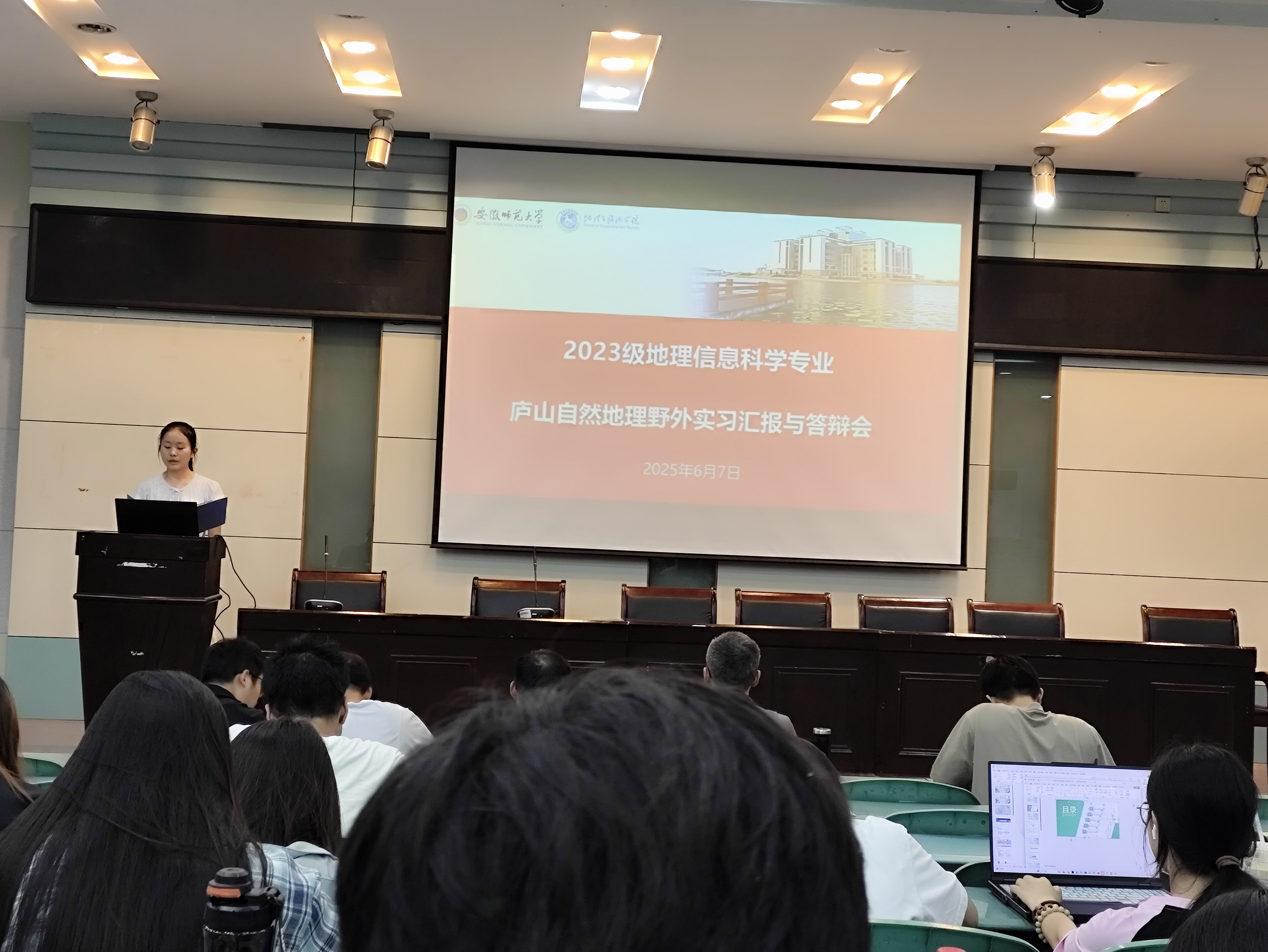 本次总结汇报会既是对八天野外实习的系统性梳理,更是地理科学实践教学的成果检阅。同学们在庐山的山水之间丈量地理真知,在团队协作中凝聚科研精神,不仅夯实了专业基础,更以实践为笔,书写了地理学科 “知行合一” 的生动篇章。未来,学院将继续深化实践教学体系,引领学子在更广阔的自然课堂中探索地理奥秘,为培养兼具理论深度与实践能力的新时代地理人才奠定坚实基础。