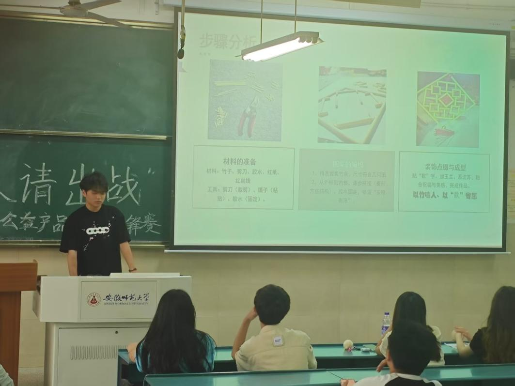 敬老公益赛场中,选手们围绕敬老主题展示了精心设计的作品,涵盖香囊、记事便签、纸花等,均为服务老年群体而创作。其中,四号选手胡钤栋的竹制装饰品设计理念尤为突出。该作品以“竹”为载体,将竹子精心拼接成型,主体贴有醒目的“歡”字剪纸,并辅以象征高洁的玉兰装饰,底部系有传统流苏。选手阐释其设计思路时提到,“歡”字直接表达对老人欢乐的祝愿,玉兰代表敬意,流苏增添灵动美感,整体希望营造一种温馨、吉祥的氛围,传递对长者安康喜乐的深切祝福。