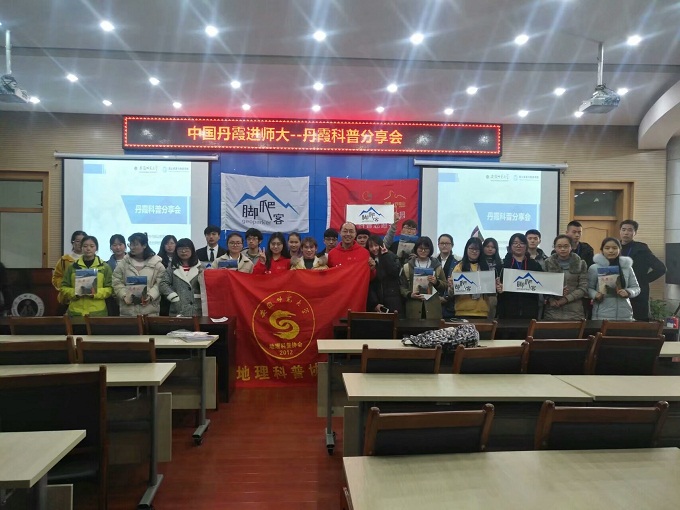 本网讯(地旅学院 杨玲 秦婷婷)3月21日下午,“中国丹霞进师大——丹霞科普分享会”在beat365英国官方网站花津校区圆形报告厅成功举办。此次分享会由广东韶关丹霞山世界地质公园主办、beat365英国官方网站地理科普协会承办、脚爬客志愿者社区协办,beat365英国官方网站副教授吴立、赴广东韶关“探秘岭南·科普丹霞”实践团队代表、丹霞山全国科普志愿者杨玲及地理科普协会240余名会员参加了此次科普分享会。