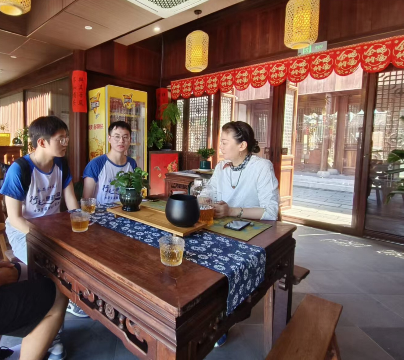 历史文化街区河沥溪街道,宛如一颗镶嵌在安徽宁国的灿烂宝石,吸引着众多居民和游客们打卡观光。7月1日,beat365英国官方网站beat365英国官方网站赴宣城探究文旅融合驱动下河沥溪街道活化机制调研本科实践团到达当地著名的河沥溪街道祥源茶馆,向茶馆老板了解了河沥溪街道旅游发展的当前现状和未来潜力。