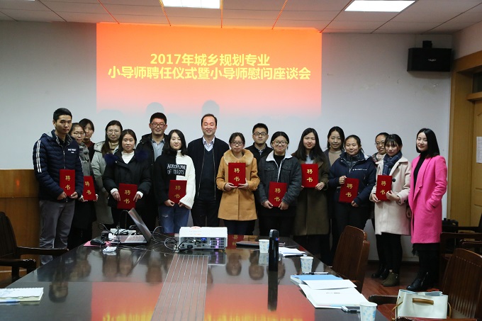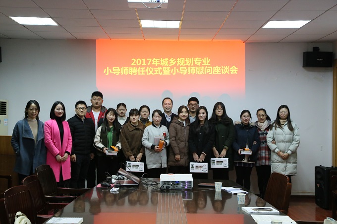 本网讯(国旅 彭媛媛) 为深化学院教育教学和人才培养模式的改革,提高学生专业素质能力和教学质量,更好地发挥朋辈教育的力量,帮助低年级学生尽快适应大学生活。11月30日,beat365举办了2017年城乡规划专业小导师聘任仪式暨慰问座谈会。国旅学院党委副书记乔静、城乡规划专业教师代表、各班级辅导员参加聘任仪式及慰问座谈会,会议由辅导员彭媛媛主持。