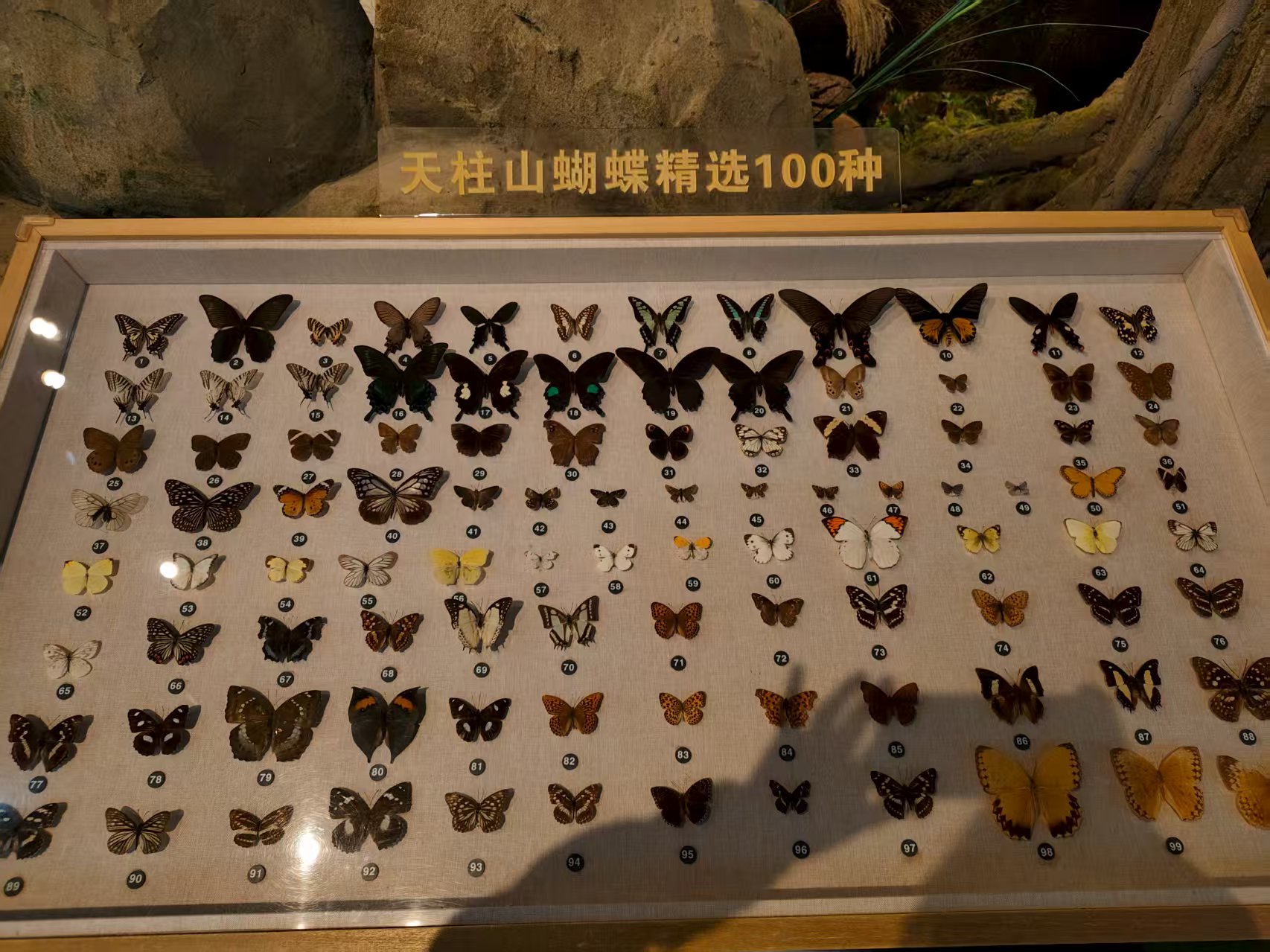 午餐过后,实践团队在杨立辉的组织下参观了天柱山博物馆。博物馆内陈列着大量珍贵的历史文物和丰富的文化资料,生动地展现了天柱山地区从古至今的发展历程和独特文化。在杨立辉的引导下,团队成员们依次参观了各个展厅,每一件展品都承载着一段历史,讲述着一个故事。队员们认真聆听讲解,不时发出惊叹,对天柱山地区深厚的历史文化底蕴表示由衷的敬佩。在地质文化展厅,队员们了解到天柱山独特的地质构造和丰富的自然资源。天柱山作为世界地质公园,其地质遗迹具有极高的科学价值和观赏价值。队员们通过观看地质模型和科普视频,深入了解了天柱山的形成过程和地质演变,感受到了大自然的神奇魅力。在标本展厅,队员们被一件件精致的标本深深吸引。从蝴蝶标本到昆虫标本,转角又是鸟类标本,有力地向我们展示了天柱山的生物多样性。